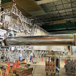 大型の抄紙機ロールを整備する機会も。複数の班が協力し10名以上で担当します。