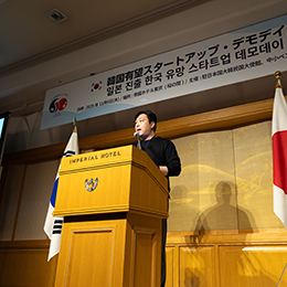 「日本進出韓国有望企業スタートアップ・デモデイ」でのスピーチの様子