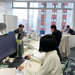 内勤メンバーも常に営業を気にかけ、何かあればすぐに助けてくれます。コンパクトなチームだからこその強みを活かし、常に声を掛け合い、皆で協力しながら楽しく効率的に働いています。