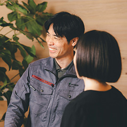 嫌な顔ひとつせず相談に応えてくれる社員ばかりで、一つひとつ経験を重ねつつ、より品質の高い施工に取り組める環境です。