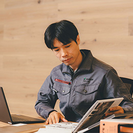 経験のない住宅ばかりですが、毎回先輩が丁寧に教えてくれますし、設計担当と連携しながら進められるところも安心ですね。山ほど質問をしても、嫌な顔ひとつせずフォローしてくれることに心強さを感じています。