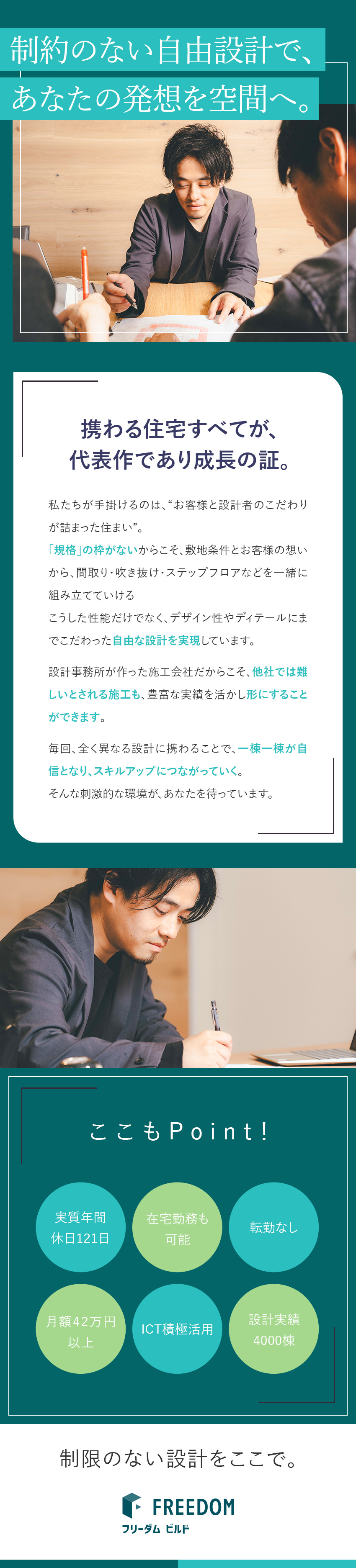 注文住宅の意匠設計/実質年休121日/月額42万円~/在宅可