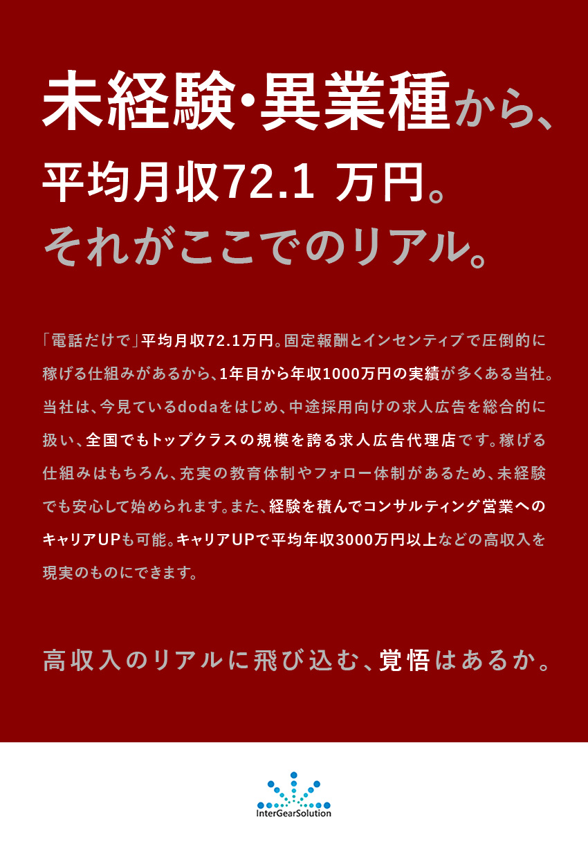【全国トップクラスの求人広告代理店】dodaなどの求人広告を電話でご提案/ニーズの確認・商談アポ設定