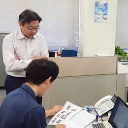 普段は個々で仕事をしていますが、困ったときは気軽に相談でき、協力しあえる環境が整っています。いつ何をするか自分で決めて行動できる自由度の高さが気楽でいいと感じています。