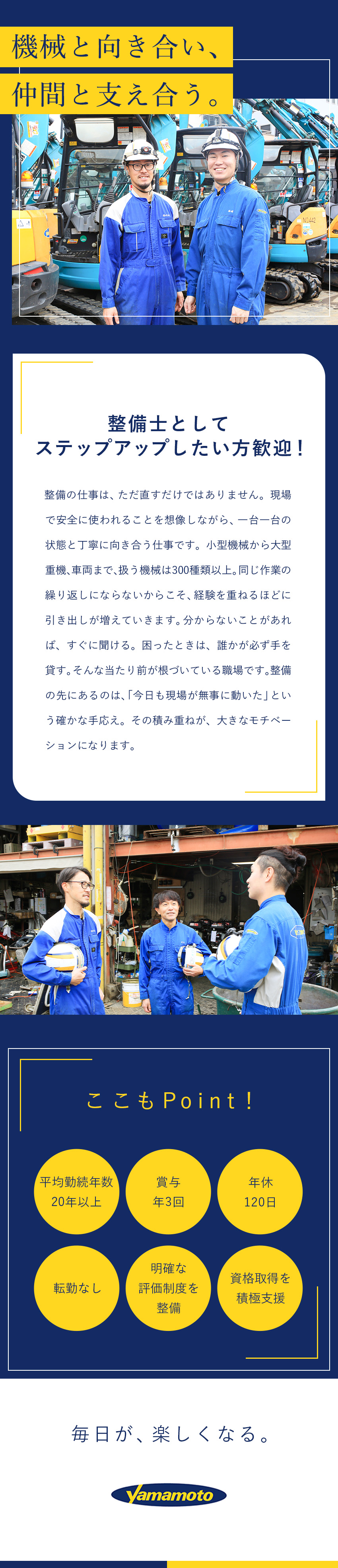 建設機械の整備スタッフ/年収450万円~/年間休日120日