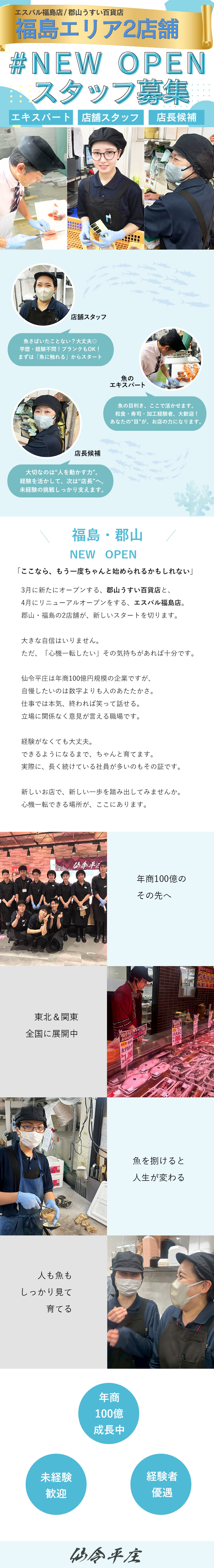 3月郡山・4月福島オープニング募集/鮮魚・店長・エキスパート