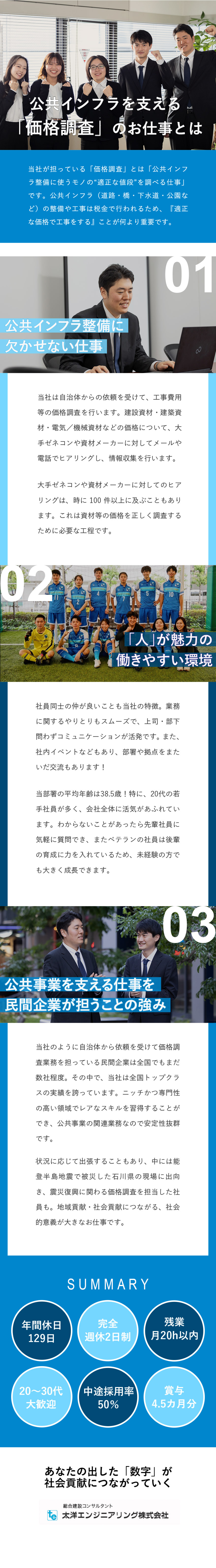 地方自治体をはじめとした公共事業の発注者から委託を受け、建設資機材価格や工事費等の市場調査・分析を実施している太洋エンジニアリング株式会社。