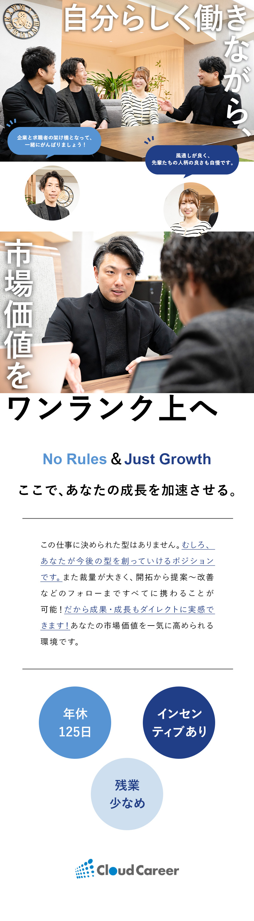 採用コンサル営業/未経験歓迎/年休125日/残業月10h程度