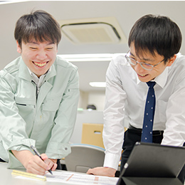 年間休日126日以上、土日祝休みの完全週休2日制、残業ほぼ無し等の労働環境により、ライフスタイルを大切にしながら無理なく活躍することができます。その上でゆくゆくは設計、施工、管理部門など幅広いキャリアを目指すことができるため、長期的に働きやすい環境です。
