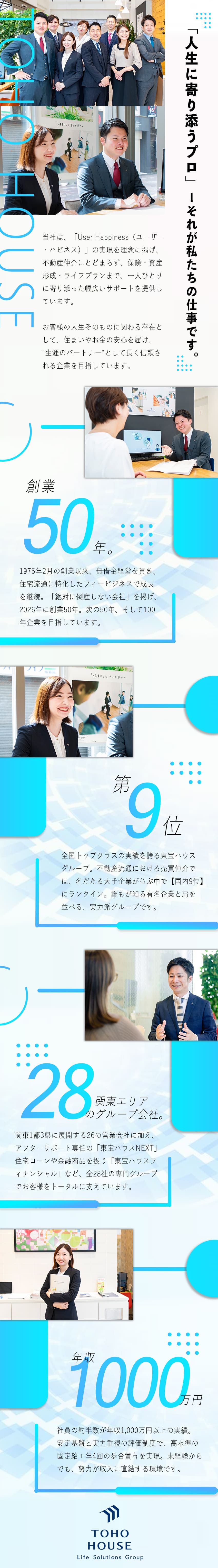 営業職=孤独、というイメージを覆すのが、東宝ハウスのチーム力。互いに学び、助け合う文化が根付いています。新店舗では社宅の用意もあり、生活面からも安心してキャリアを築けます。“人生を変えたい”というあなたにこそ、ふさわしい場所です。