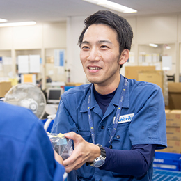製造スケジュールに合わせて必要な資材を生産場所に出庫。生産ラインが滞りなく稼働できるようにフォローします。