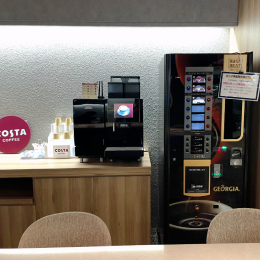 ホテルのような受付や、無料で飲めるコーヒーメーカーがある休憩スペースなど、とても働きやすい環境です!
