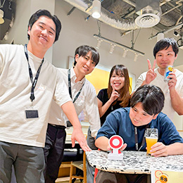 仕事の合間のちょっとした休憩や仕事終わりにみんなで集まりコミュニケーションを楽しんでいます。