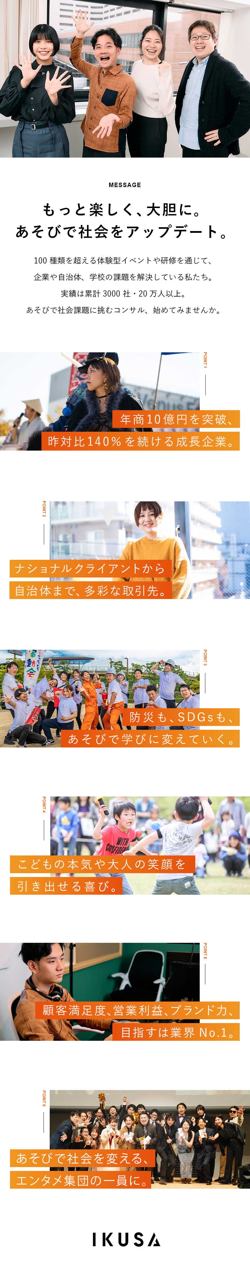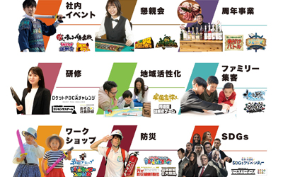 あそびを起点に、人や組織、地域が抱える課題を解決するソリューションを提供している同社。100種類を超えるオリジナルの体験型イベントや研修を強みに、企業・自治体・学校など幅広い分野から支持を集めています。