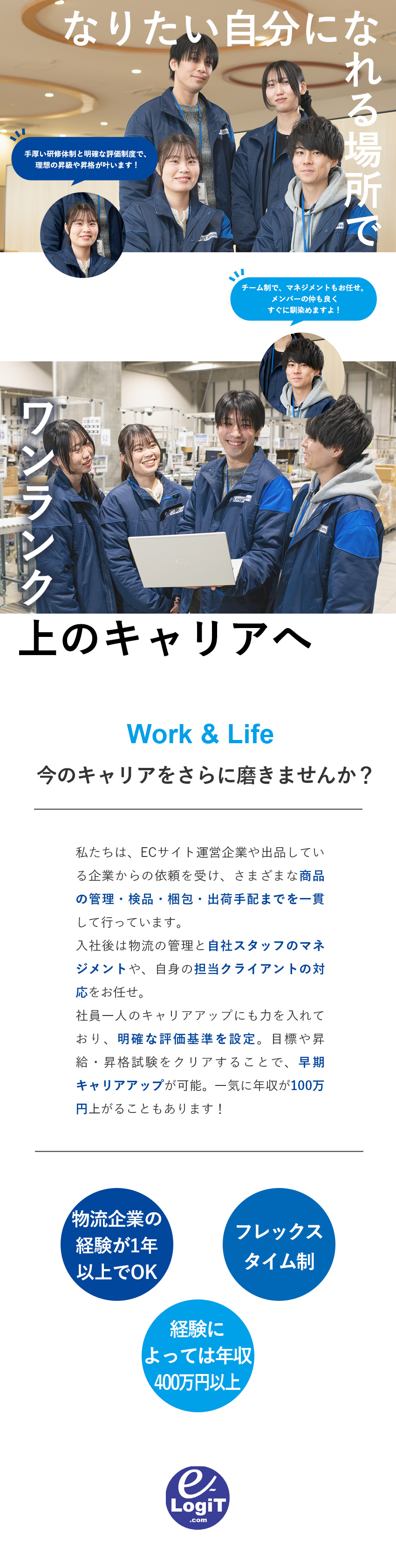 【草加or八潮】EC倉庫管理◆フルフレックス・年休120日・基本夜勤なし/豊富なキャリアパス