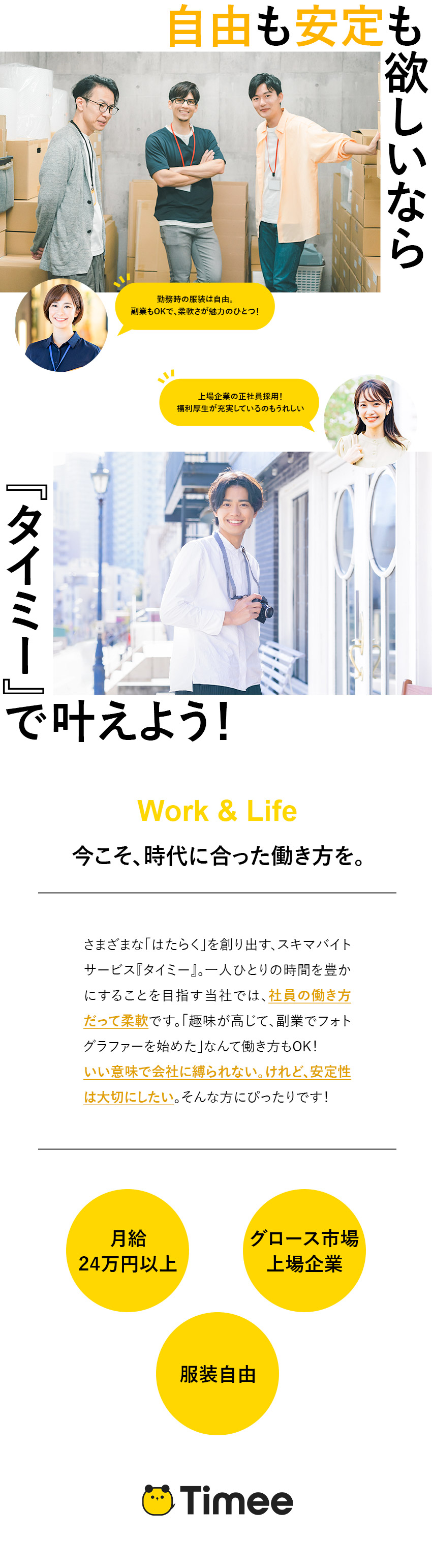 【事業管理/営業支援ツール導入・装着・運用など】新規事業『タイミーキャリアプラス』◆上場◆リモート可