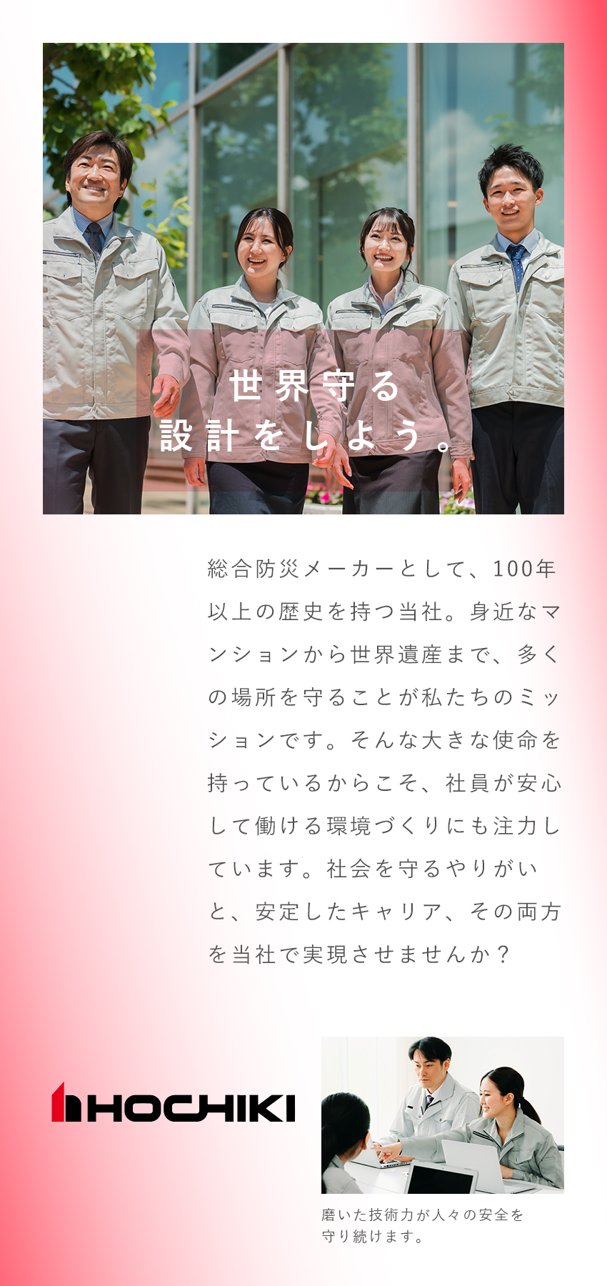 【東京/第二新卒歓迎】設備の施工管理※社会貢献性◎/設立100年超の安定性/消防設備といえばホーチキ