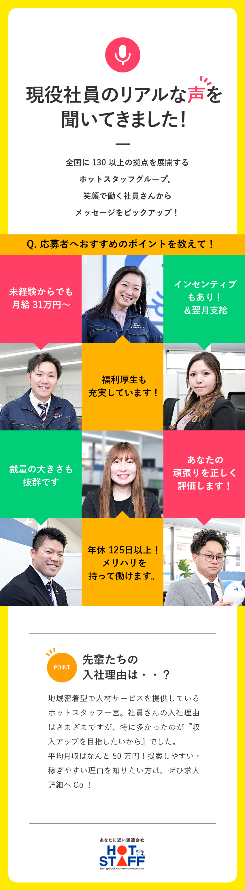 全国に130拠点を構えるホットスタッフグループ。一宮支社は地域に根ざした人材派遣業を行っています。