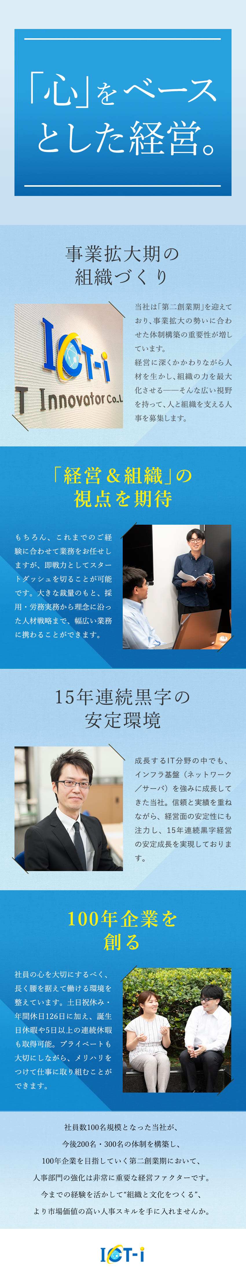 『心をベースとして経営する』を経営方針の第1に掲げて、テクノロジー企業として技術力は当然ながら重要ではありますが、それ以上にお客様や社員の『心』を最も大切に考えながら歩んできました。もちろん、経営の安定面も重視しており15年連続黒字経営で安定成長を実現しております。