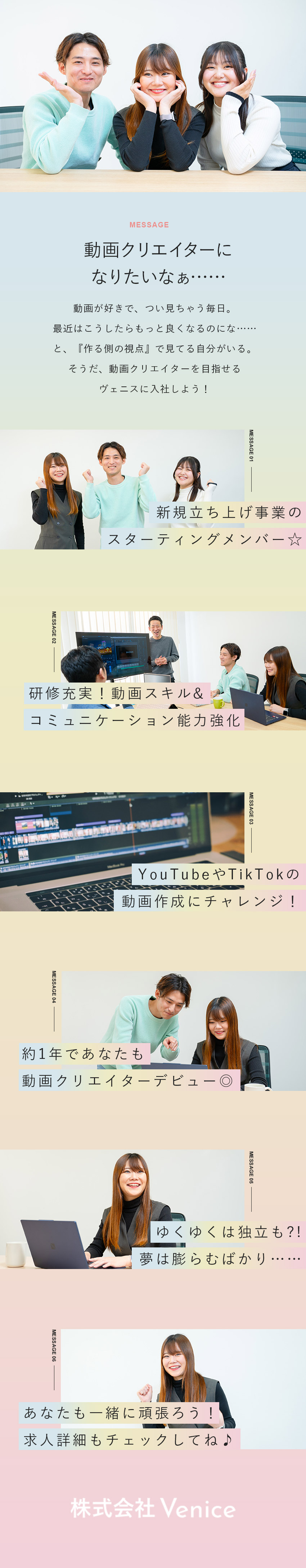 「動画クリエイターになりたい」「成長したい!」という方をお待ちしています!