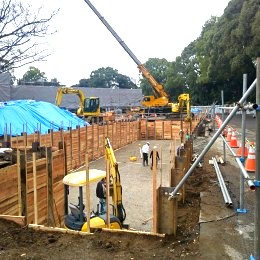 青山霊園の工事の様子。有名な場所の工事を行っています。