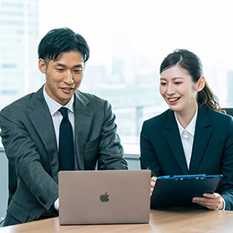最初は何も分からず不安でしたが、先輩の丁寧で親身なサポートのおかげで少しずつ自分なりに提案できるようになりました。契約が決まったときの達成感は格別で、営業の楽しさややりがいを日々実感しています!