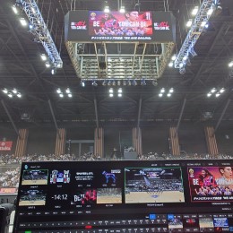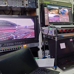 中継・番組制作のみにとどまらず、競技場の大型ビジョンでの情報表示も手がけています。