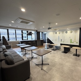 2026年1月に移転したばかりのオフィスは、カフェ風のフリースペースもあります。