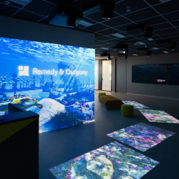 オフィスのエントランスにはプロジェクションマッピングも。
