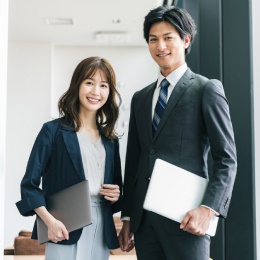 会社や商品の知識を覚えつつ、まずは事務作業からお任せします。お客様への訪問はまずは「先輩・上司の付き添い」からスタート。どんな流れで、どんな提案をしているのかなどを覚えていきましょう。