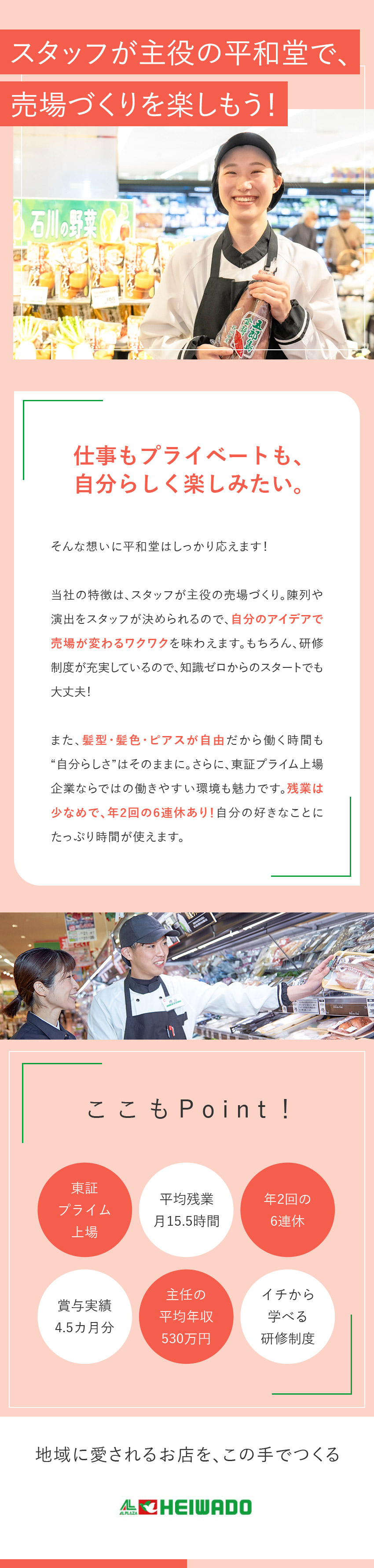 スーパーの売場担当/プライム上場/賞与4.5カ月/残業少なめ