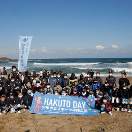 地元のスポーツ少年少女ともに海岸のゴミ拾いや野球教室など開催。地域にも貢献しています。