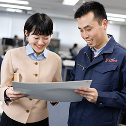 一緒に働く社員は穏やかな人柄の方ばかり。忙しいときはお互いにフォローしたり、時には熱く意見交換をしたり。切磋琢磨しながら業務に臨んでいます。ものづくりが好きな私たちと一緒に働きませんか?