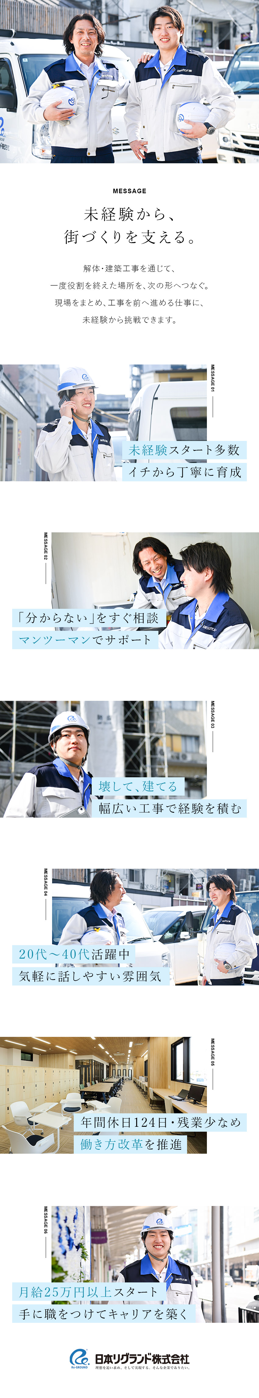 施工管理/経験不問/月給25万円以上/年休124日/土日祝休