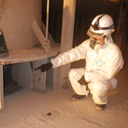 焼却プラントの点検整備後の立ち合いの様子。丁寧な仕事を徹底しています。