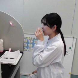 └少量を口に含み、味覚・臭覚など人間の五感を使った検査を行います。