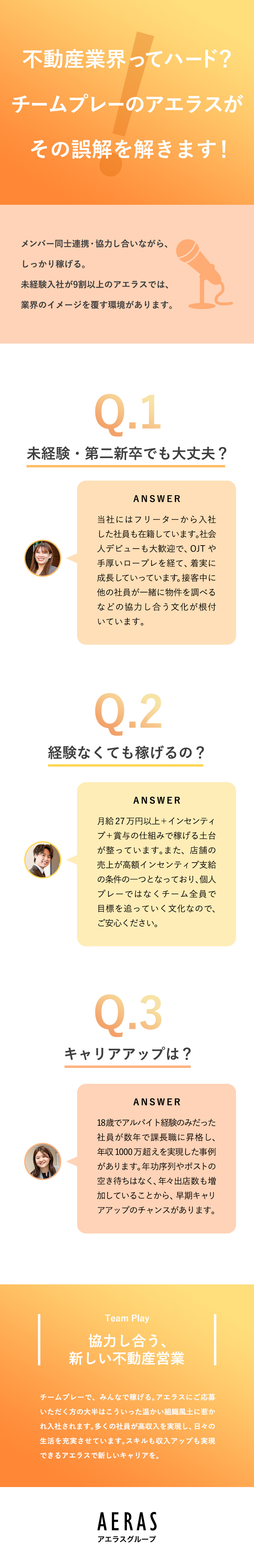 「成果主義で個人プレー」という不動産業界のイメージとは真逆の、「チームワークを大事にする」アエラスの風土に驚く社員が多いそうです。
