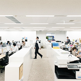 広々とした明るいオフィス。部署間の仕切りがないので、連携もスムーズです。