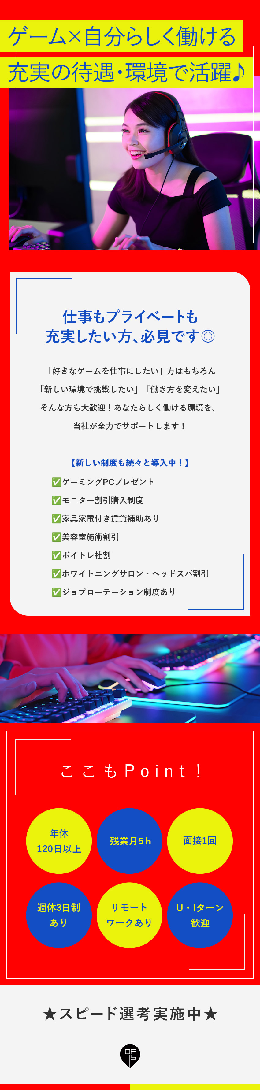 eスポーツ総合職(ゲーム大会企画運営・事務等)年休129日可