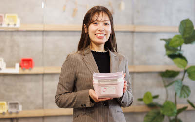 「日常品の収納雑貨とか、キッチン用品、ベビー用品など身近な商品を扱っているので、使用イメージを簡単に想像できて、提案がしやすいことが魅力ですね。また、定番商品だけでなく、お客さまのご要望に合わせてオリジナル商品を作ることもできることも特徴です。当社は自社工場を持っているため、納期もロット数も柔軟に対応でき、さらに社内にデザイナーがいるので、お客さまとの会話の中でのイメージをすぐにイラストに起こし提案できます。スピード感をもった対応がお客さまから評判で、ここが当社の大きな強みだと思います。」