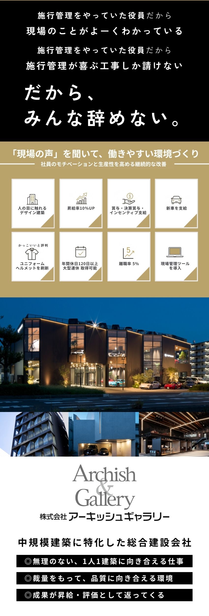 【名古屋】建築施工管理※資格不問/転勤無/年間1~2棟の常駐体制/年休120・土日祝休み◎