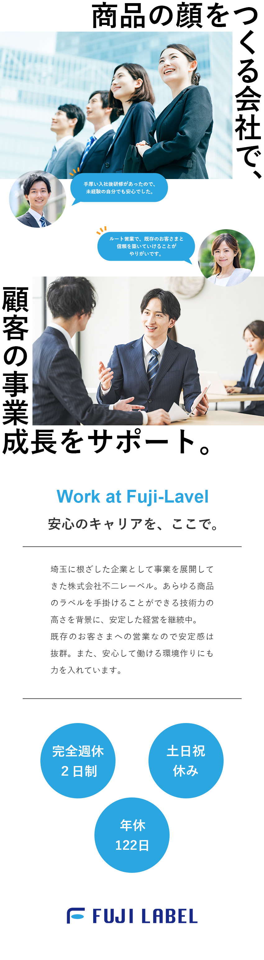 商品ラベルのルート営業/未経験歓迎/年休122日/土日祝休み