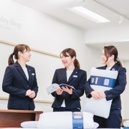 先輩たちのほとんどが睡眠知識や寝具販売についてイチから学び、活躍しています。研修、OJT、リトレーニングなど、サポート体制が整っているので安心して働けます♪