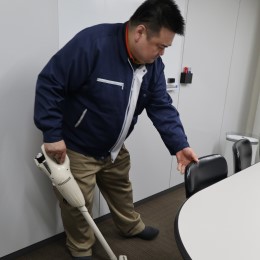 「基礎的なことだけでなく、ステップアップとして『ビルクリーニング技能士』の資格取得を考えた時にも活かしてもらえます。実際の実技試験で出題される機材と同じものを用意しているので、遠慮することなく練習ができますし、私も機材の扱い方のコツや試験に向けたサポートも行っています。ぜひ遠慮なく頼ってほしいですね」とも話します。