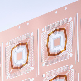 半導体パッケージの内部配線として使われる薄型の金属部品で、スマートフォンやパソコンなどになくてはならない重要なパーツです。当社はリードフレームを世界で初めて、精密金型を使った打ち抜き(スタンピング)により生産することを可能にしました。