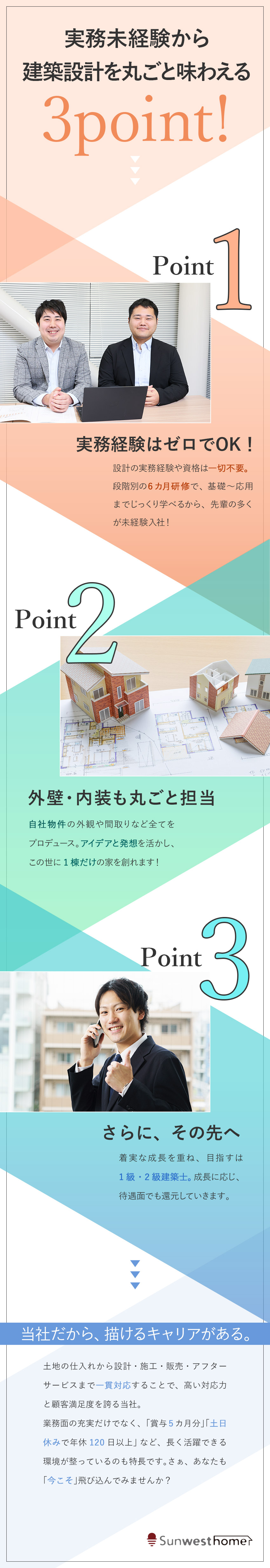 建築設計士/未経験歓迎/自社物件/賞与5カ月分/研修充実