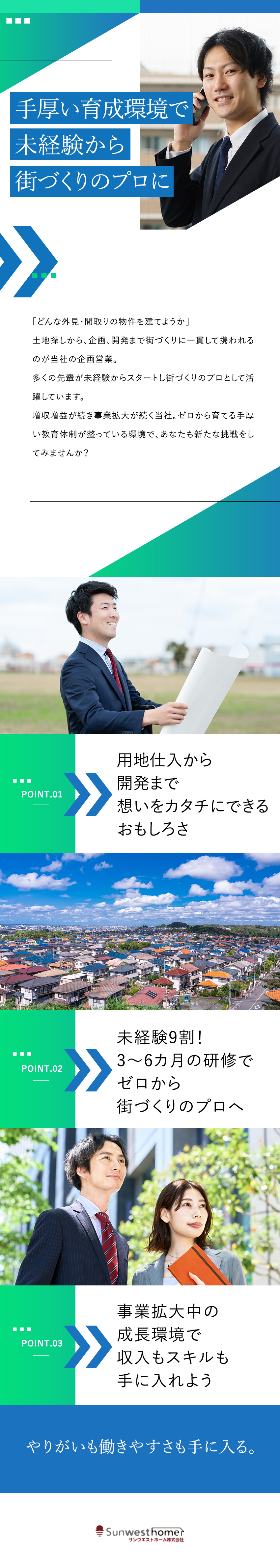 【未経験入社8割★住宅プロデュース※戸建て】新規開拓・ノルマ・転勤なし/残業ほぼゼロ/みっちり教育◎