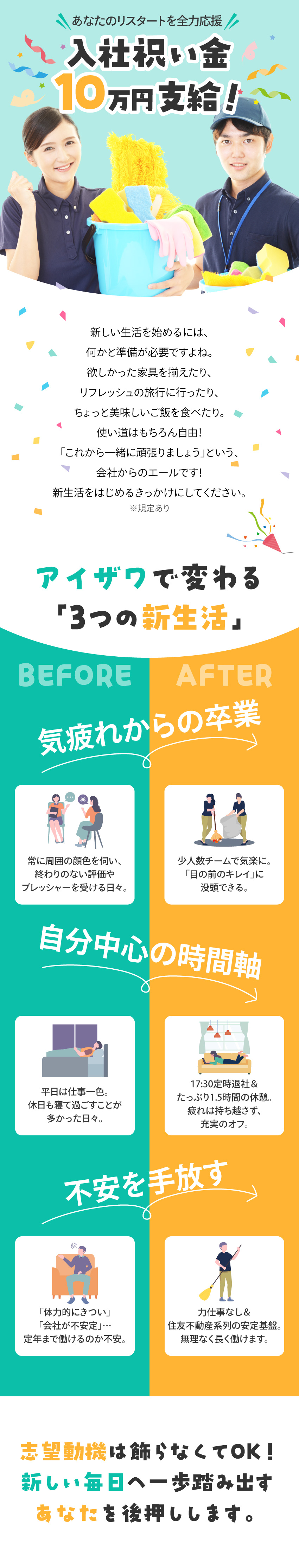 清掃スタッフ/入社祝金10万円/完全週休2日/賞与年2回支給