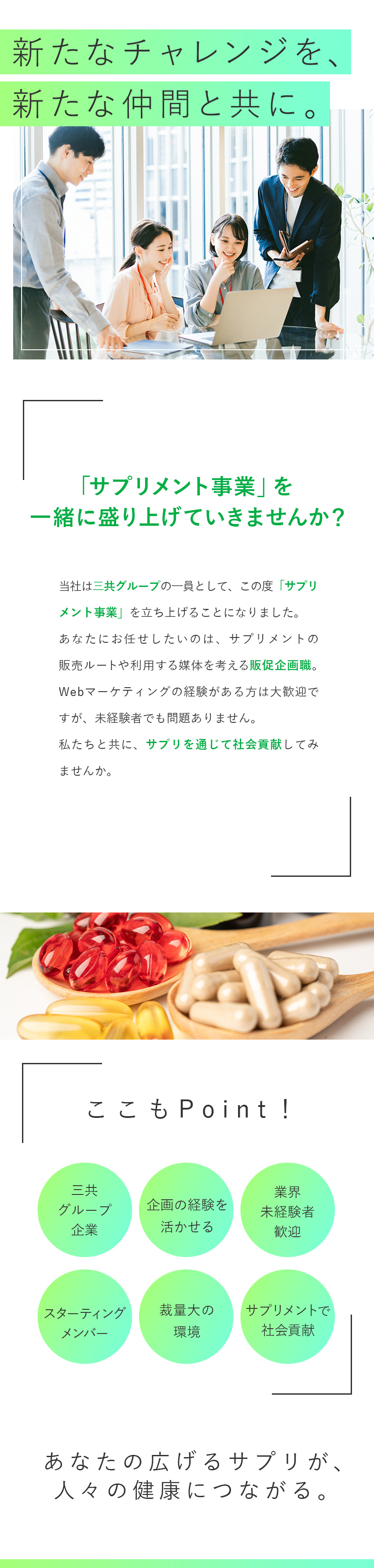 サプリメントの販促企画/未経験歓迎/新規立ち上げ/大阪市北区