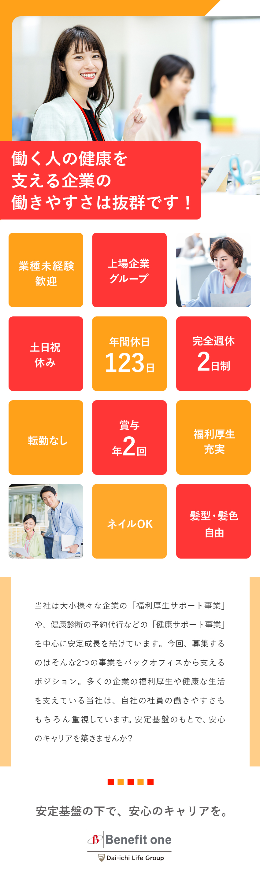 事務系総合職(事務・サポートデスク)/年休123日/服装自由